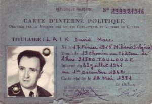 Carte d’interné politique parce que Juif dans un Camp d’internement près de Colomb-Béchar avec astreinte aux travaux forcés.