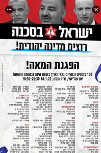 אנחנו נפגשים ביום שני 18/1/22 בצומת אשקלון בכניסה לשד בן גוריון בשעה 18.10 ,יחולקו דגלים וחולצות חמשתתפים במצעד ה100 נגד הממשלה .