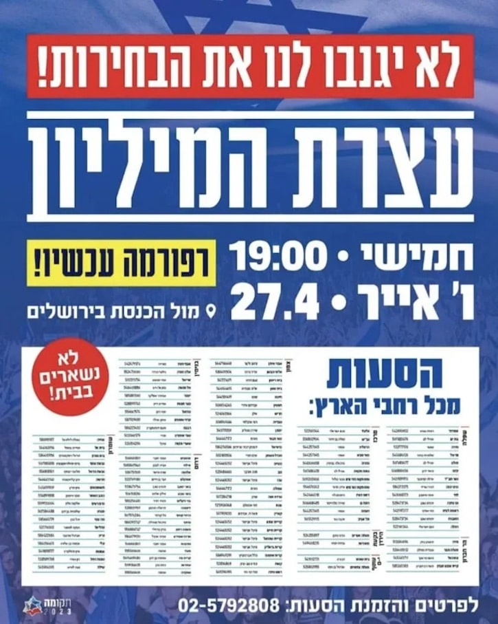 Le rallye du million, jeudi 19:00 Réformez maintenant. 27/04 devant la Knesset à Jérusalem.