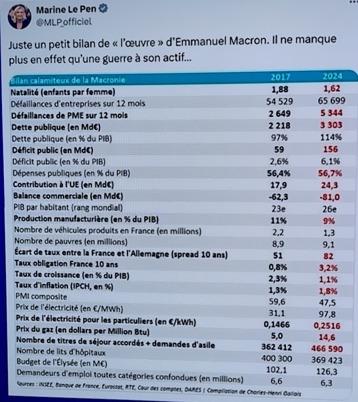 De ce fait depuis des mois la France est ingouvernable. Une cohabitation de bric et de broc s’occupe des affaires courantes.